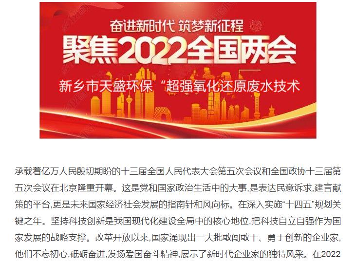 新華在線轉(zhuǎn)載:《關(guān)注:解碼科技創(chuàng)新》——新鄉(xiāng)市天盛環(huán)?!俺瑥?qiáng)氧化還原廢水處理技術(shù)”