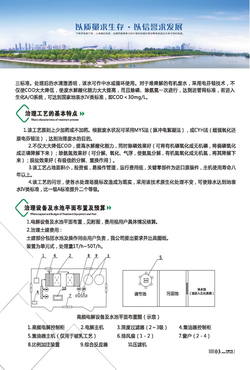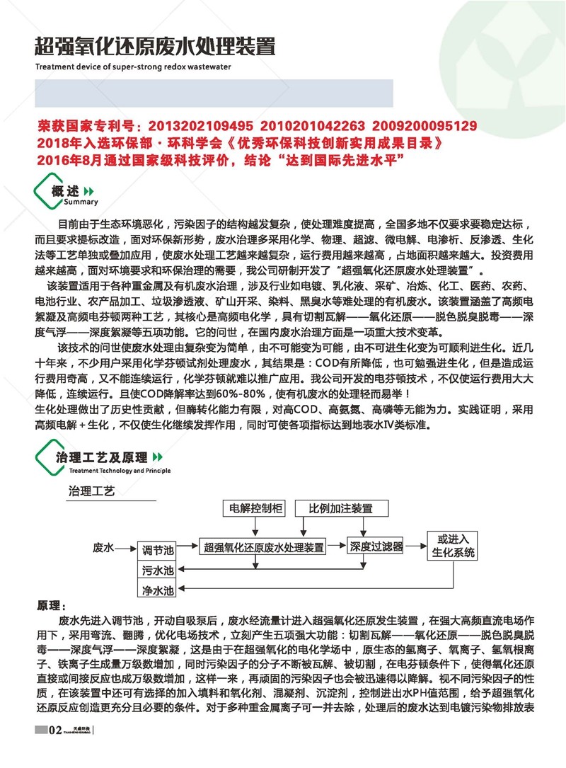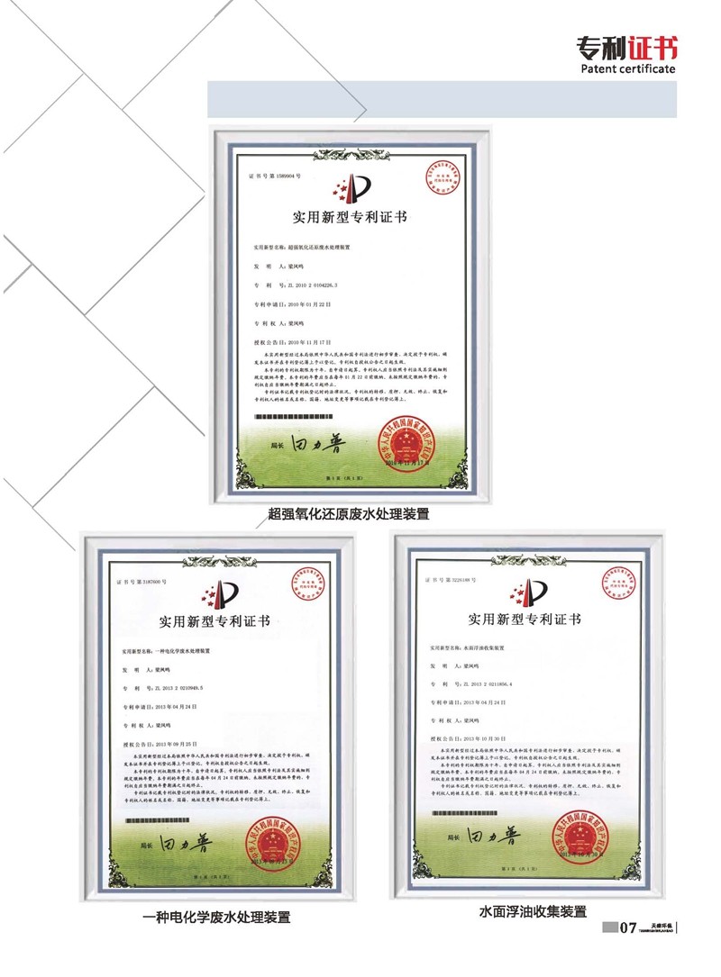 公司始建于1986年,以處理各種有機廢水、各種重金屬廢水為主,獨立研制開發(fā)多種節(jié)能環(huán)保產(chǎn)品,已獲多項國家發(fā)明及新型專利一種電化學(xué)廢水處理裝置 ZL 2013 2 0210949.5。公司堅持“以質(zhì)量求生存、以信譽求發(fā)展、以市場為導(dǎo)向、以技術(shù)為依托”的宗旨。